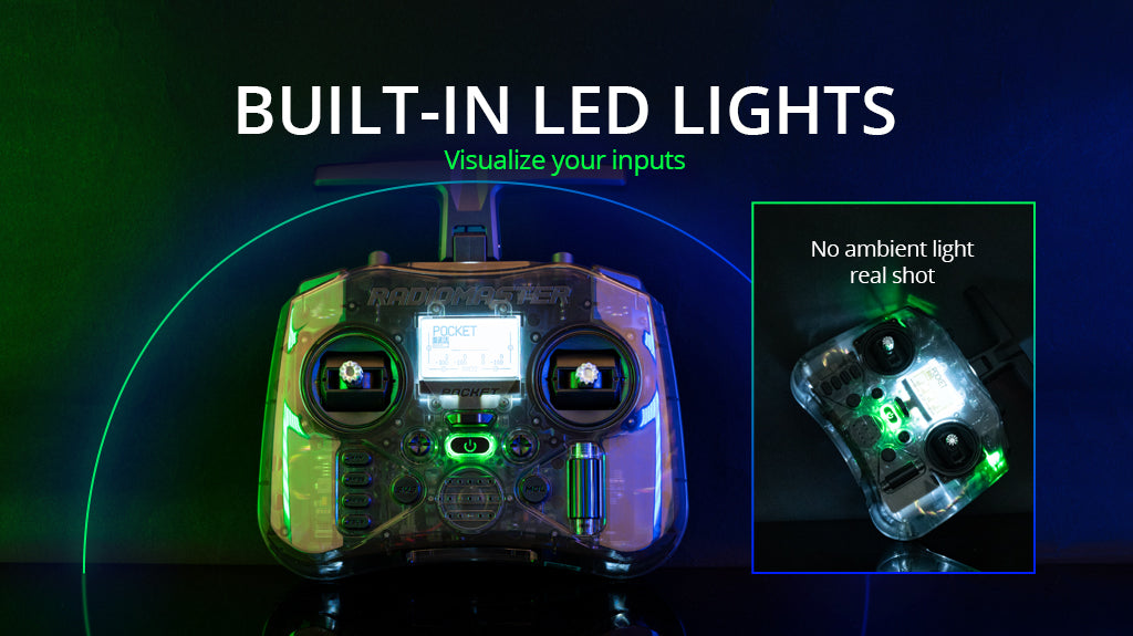 بدنه این رادیوکنترل بسیار سبک و قابلحمل است و دارای گیمبلهای Hall-effect دقیق، صفحهنمایش LCD با نور پسزمینه و نور LED برای نمایش وضعیت سوئیچها میباشد که باعث میشود حتی در پروازهای طولانی نیز کنترل راحت و دقیق داشته باشید.