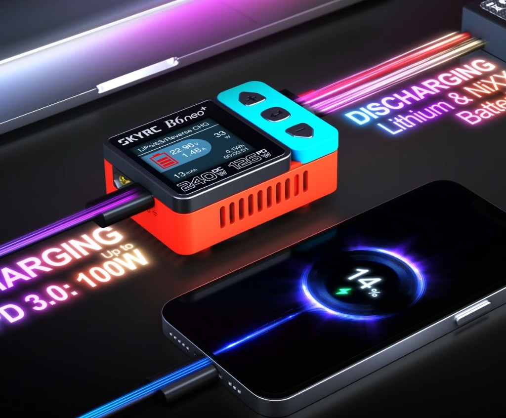 با تکیه بر میراث نمادین iMax B6، SkyRC B6neo+ تعریف جدیدی از شارژ RC ارائه میدهد—با اندازهای معادل یک چهارم و سرعتی تا ۴ برابر بیشتر. این شارژر شیک و به اندازه یک کارت اعتباری، رنگهای جذابی را با یک قاب پلاستیکی بادوام ترکیب میکند و قدرت و زیبایی را به جعبه ابزار RC شما میآورد. B6neo+ با قابلیت شارژ تا ۲۴۰ وات DC و ۱۲۶ وات از طریق USB PD، جمع و جور اما قدرتمند است. بار دیگر، SkyRC ثابت میکند که چرا برای شارژ RC انتخاب اول است!