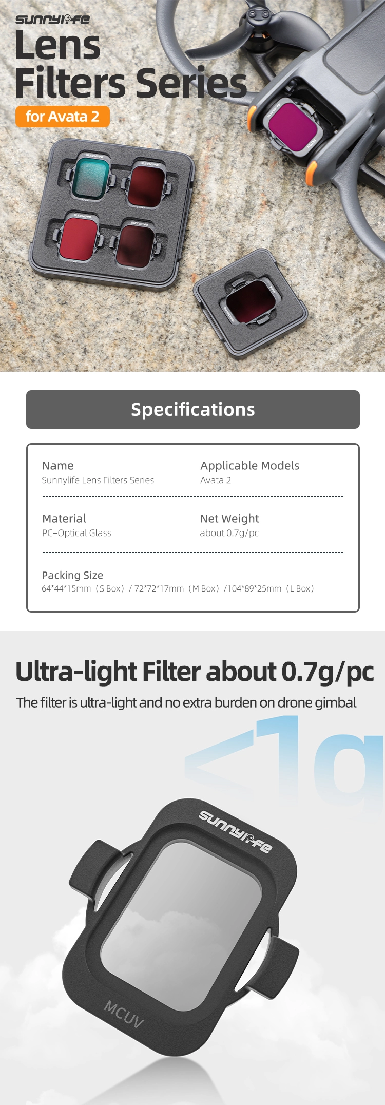 فیلتر لنز Sunnylife فیلترهای MCUV ، ND8، ND16، ND32 برای Avata 2